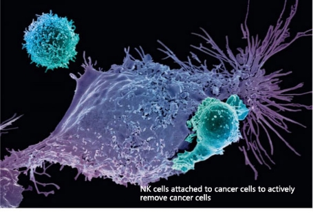 이중에서도 매우 강력하게 면역작용을 담당하는 세포가 NK(Natural Killer, 자연살해)세포입니다.비정상세포에 접근한 NK세포는 퍼포린(perforin)이라는 물질을